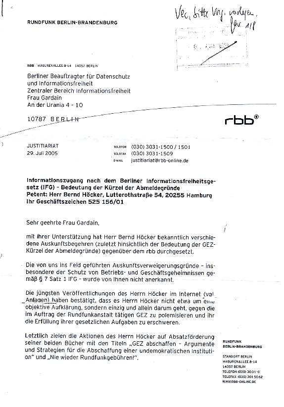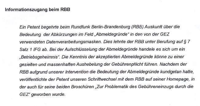 Herausgabe der von mir gewünschten Informationen und fragte beim rbb nach den
