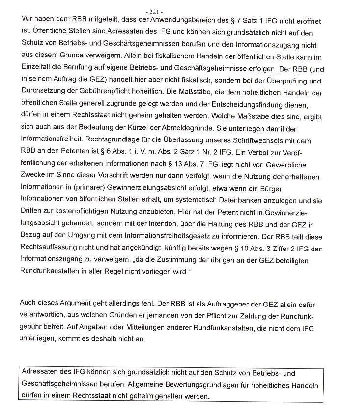 (IFG=Informations-Freiheits-Gesetz) Inzwischen wurde mir auch dieses skurrile Schreiben des rbb zur Kenntnis gebracht: |