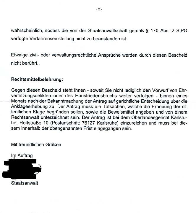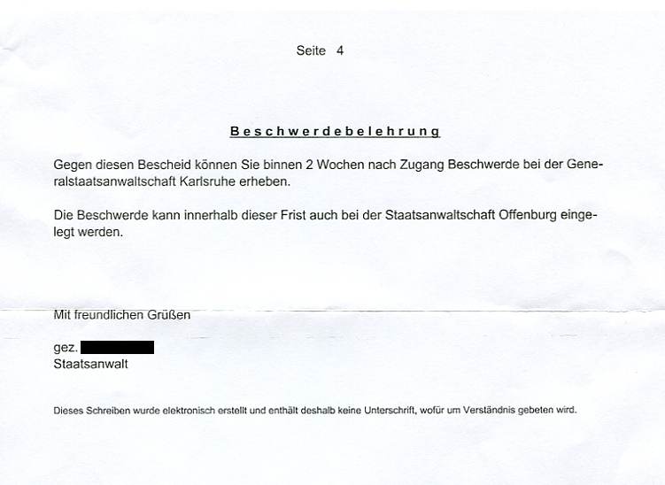 5 Jahre später... ...erst jetzt kam der Bescheid der Staatsanwaltschaft: