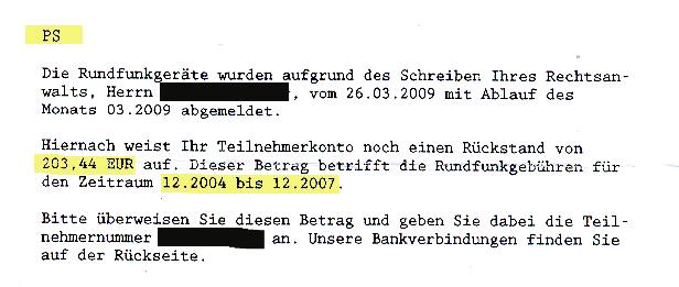 Vom Anwalt verraten und von der GEZ weitergejagt 12. März 2010 Die Einschaltung eines Ombudsmanns, wie hier geschildert, lief komplett ins Leere. Er konnte (oder wollte?) nicht helfen, weil das "kein Datenschutzproblem" sei. Es kam dann am 17. September 2009 zum Gerichtstermin, zu dem Frau Schoen wegen ihrer Behinderung nicht erscheinen konnte und dem Anwalt daher mit ihrer Vollmacht ihre Vertretung überlies. Laut Protokoll dauerte die Verhandlung gerade mal eine viertel Stunde und endete mit einer Klagerücknahme(!?!?!) seitens ihres Anwalts - ohne Frau Schoen dafür telefonisch um ihr Einverständnis gebeten zu haben. Außerdem hatte er nicht abgewendet, dass der RBB weitere Forderungen an Frau Schoen richten würde. Aus meiner Sicht ist er vom RBB aus Unkenntnis ganz kräftig über den Tisch gezogen worden. Und so wollte der Anwalt seine Kapitulation schönreden, nach dem Motto: Die alte Dame merkt schon nix: