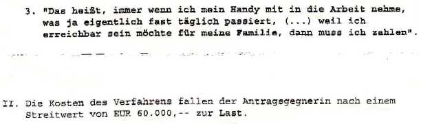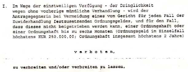 Diese Einstweilige Verfügung ist in einer mündlichen Verhandlung vom 15.12.06 mit Tenor vom 19.12.06 bestätigt worden. Die Begründung des Gerichts liegt mir noch nicht vor (Stand 25.4.07)