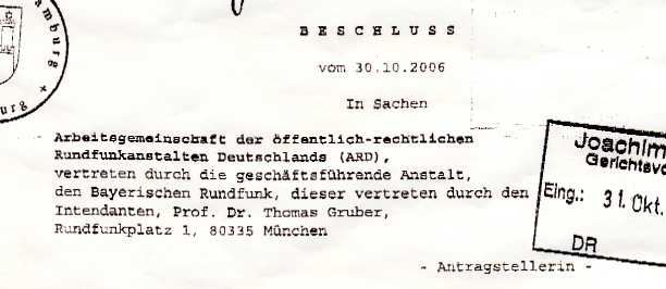 DIESE AUSSAGE IST AUF BETREIBEN DER ARD VERBOTEN WORDEN. Hier der Wortlaut der Einstweiligen Verfügung: ....... (zwei weitere Verbote)...