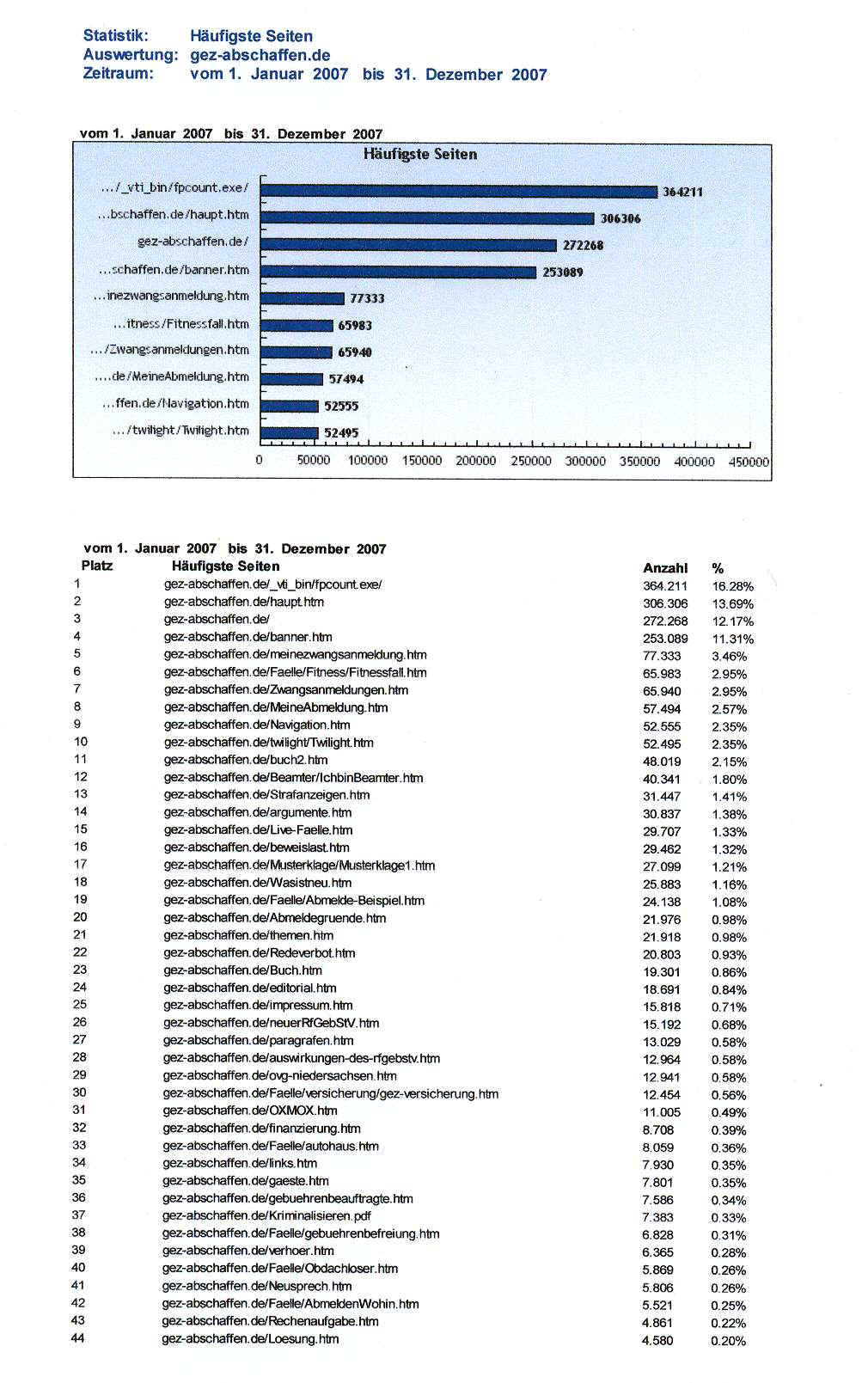 Jahresstatistik von GEZ-abschaffen.de 2007