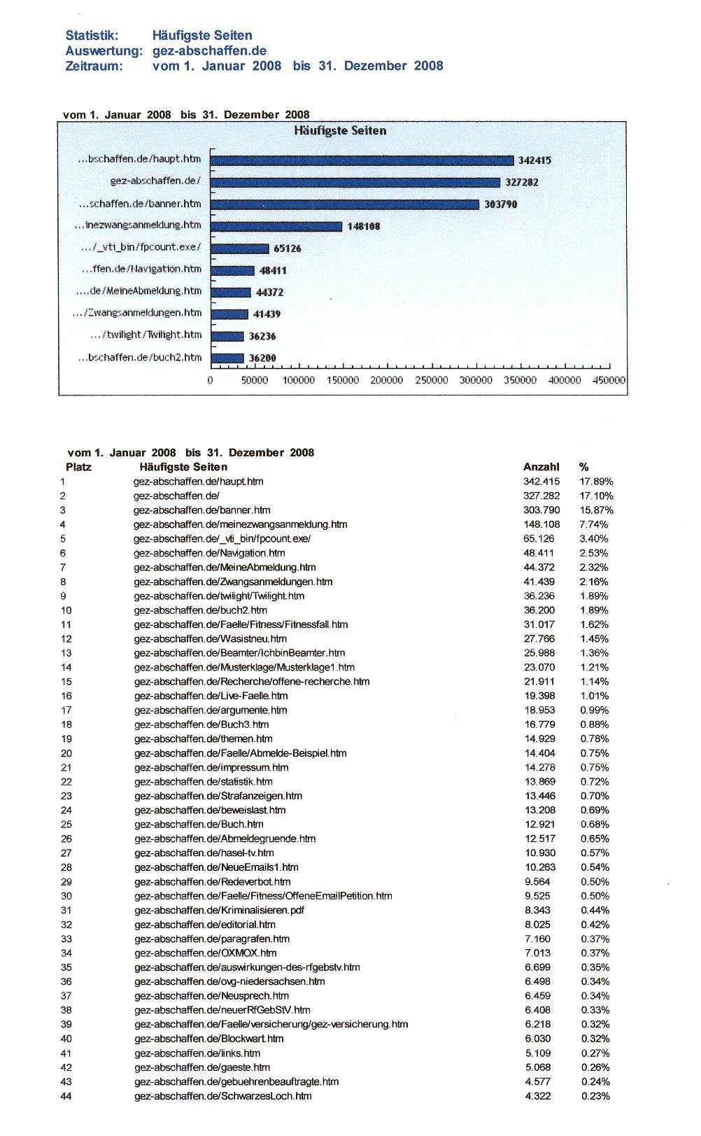 Jahresstatistik von GEZ-abschaffen.de 2008